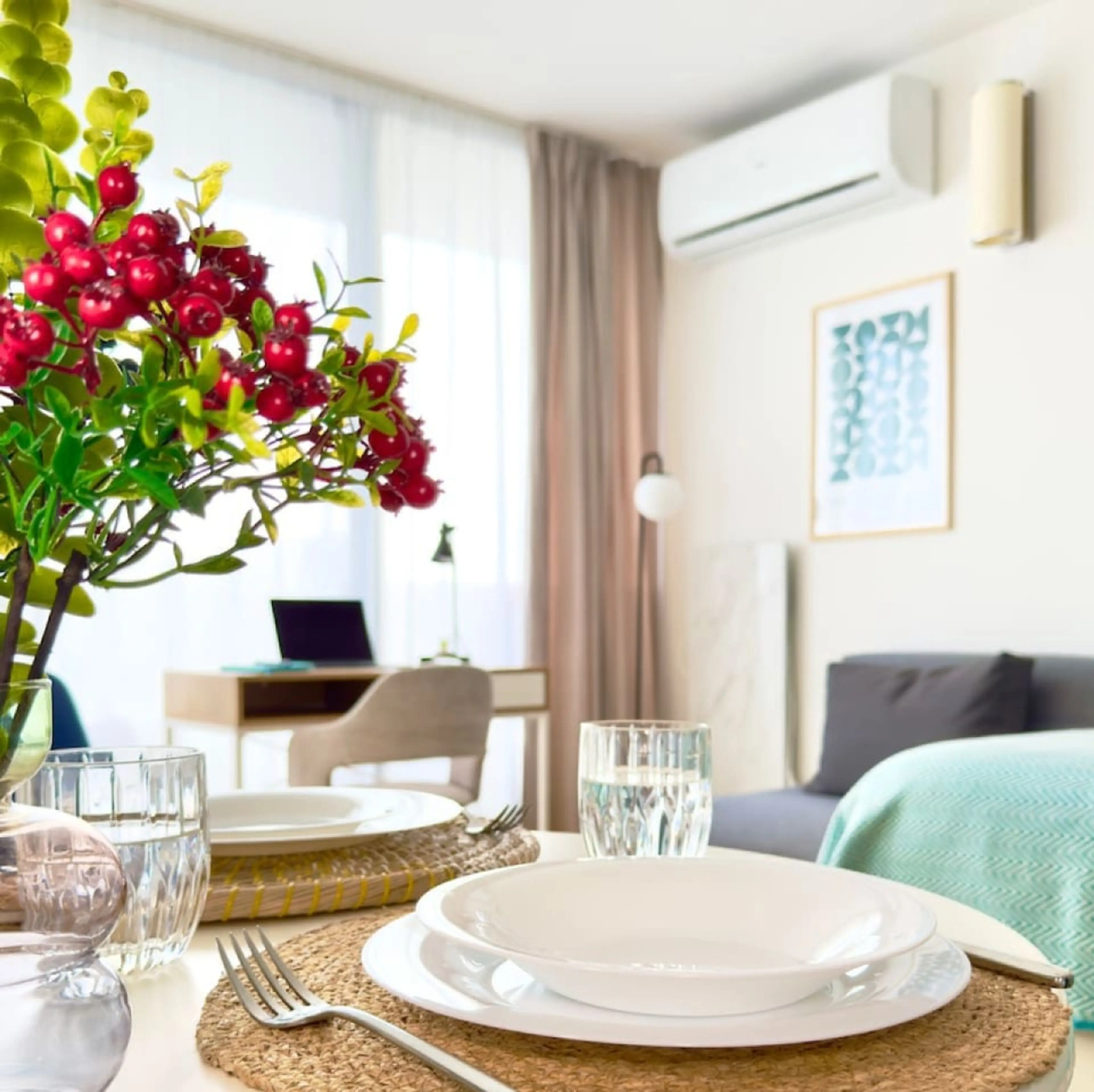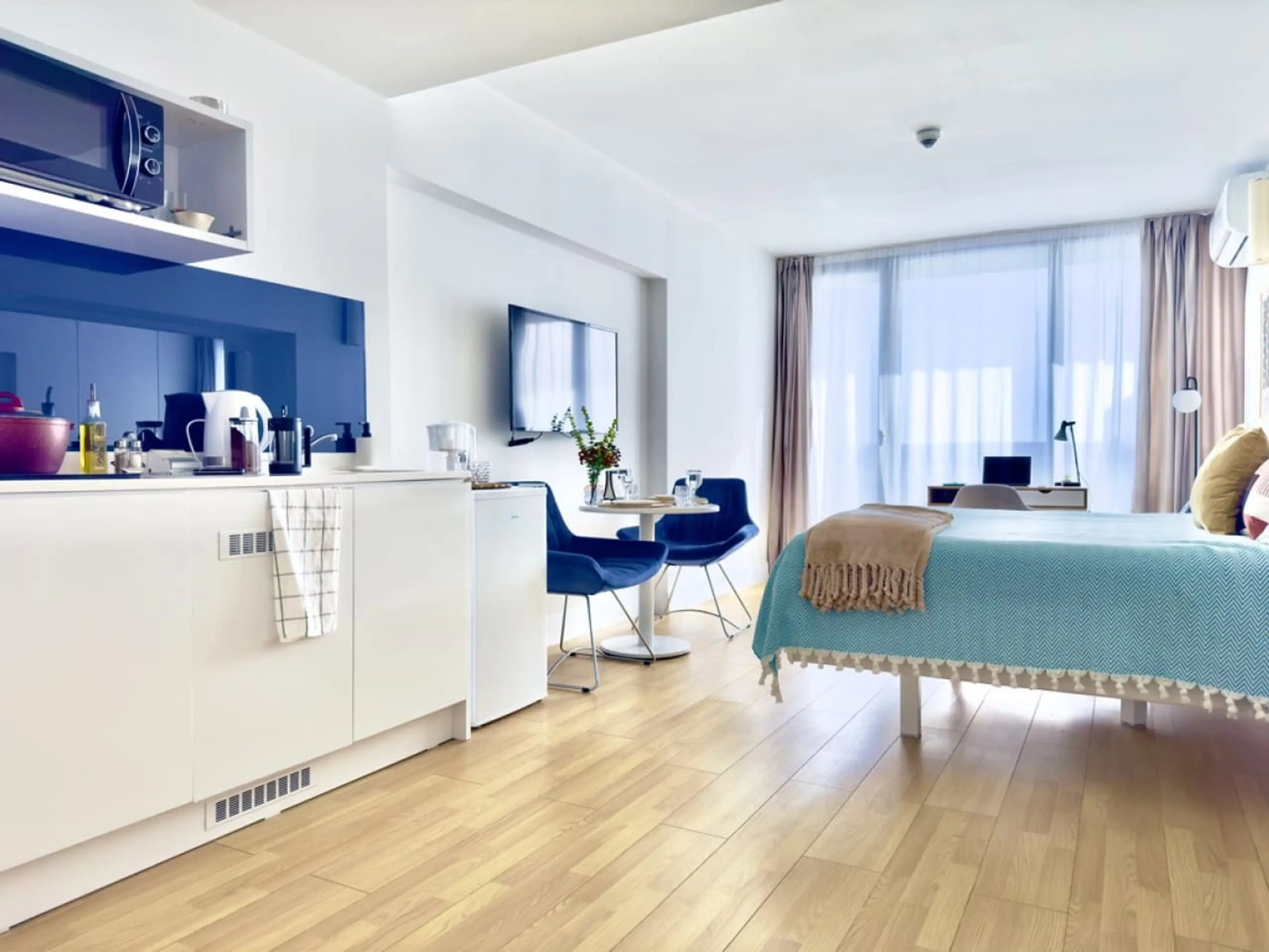 Welcome to a well-thought-out studio with care for you and nature, in one of the most vibrant apartment complexes in Batumi, Orbi City C. On the 28th floor with partial sea views, surrounded by city life, you will find a functional and stylish space for relaxation and work, with an author's interior...